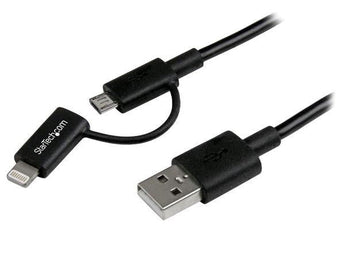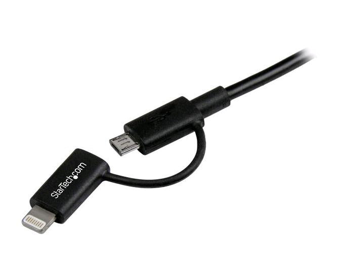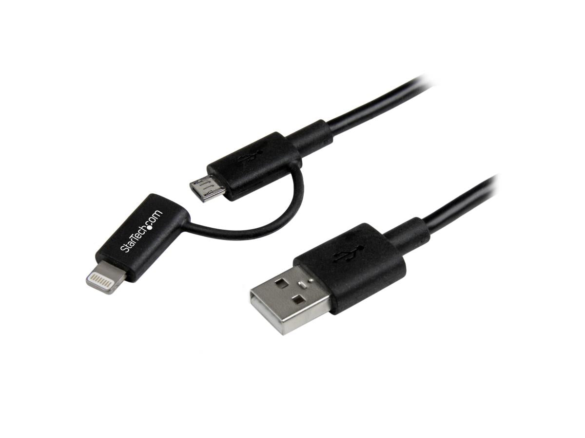| Product Description | StarTech.com 1m (3 ft) Black Apple 8-pin Lightning Connector or Micro USB to USB Combo Cable for iPhone iPod iPad - Charge and Sync Cable (LTUB1MBK) - charging / data cable - Lightning / USB - 3.3 ft |
