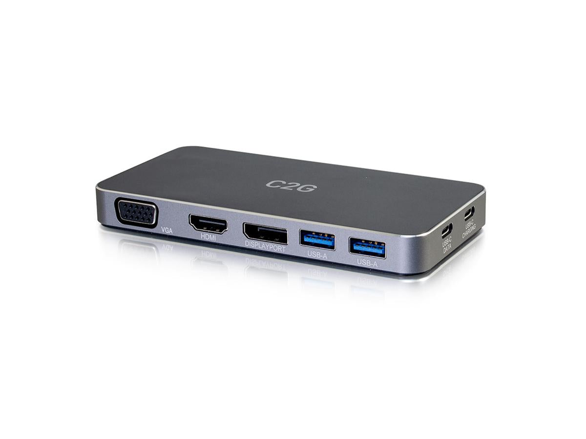 Product Description | C2G USB C Docking Station - Dual Monitor Docking Station with 4K HDMI, DP, and VGA - Power Delivery up to 100W - docking station - USB-C / Thunderbolt 3 - VGA, HDMI, DP |