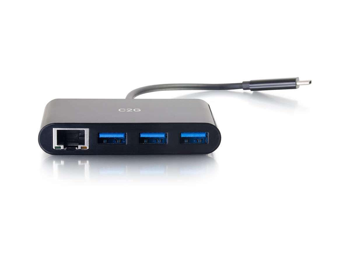 C2G USB C Hub with Ethernet - 3-Port USB Hub - Hub - 3 x SuperSpeed USB 3.0 + 1 x USB-C + 1 x 1000Base-T - desktop