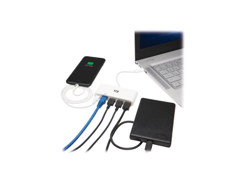 Product Description | Eaton Tripp Lite series 3-Port USB-C hub w/ Gigabit ethernet GbE, USB-C Charging USB Type C USB 3.1 Hub - hub - 3 ports |