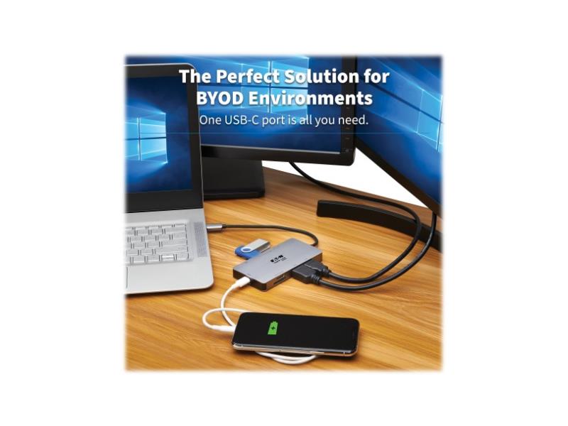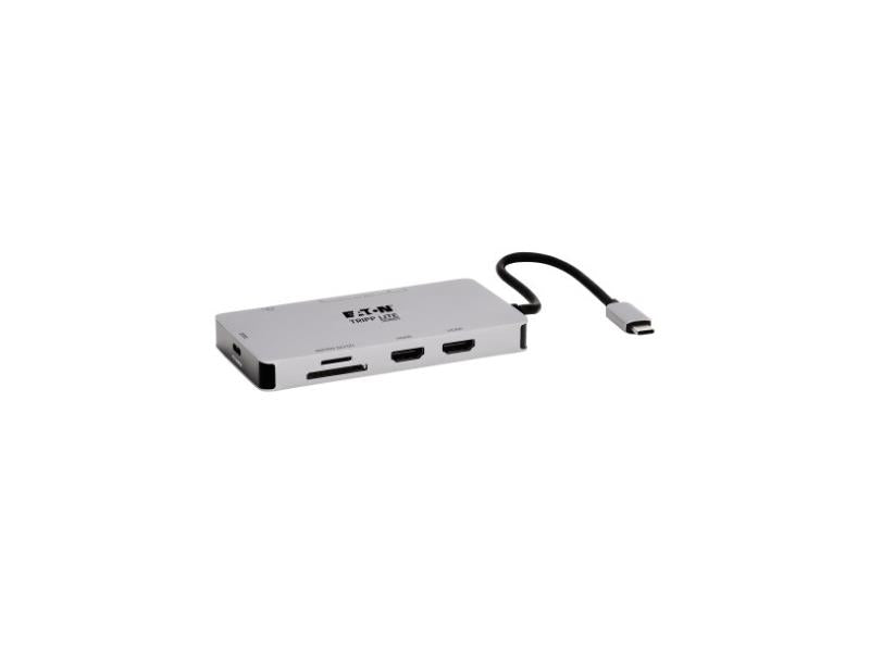 | Product Description | Eaton Tripp Lite Series USB-C Dock, Dual Display - 4K 60 Hz HDMI, USB 3.2 Gen 1, USB-A Hub, GbE, Memory Card, 100W PD Charging, Gray - docking station - USB-C - 2 x HDMI - 1GbE |