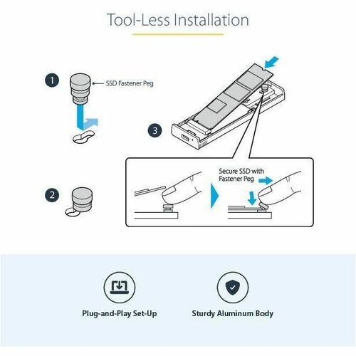 | Package Contents | M2-USB-C-NVME-SATA Drive Enclosure 1 x USB-C to USB-C Cable 1 x USB-C to USB-A Cable 1 x Thermal Pad 2 x SSD Fastener Pegs 1 x Quick-Start Guide |