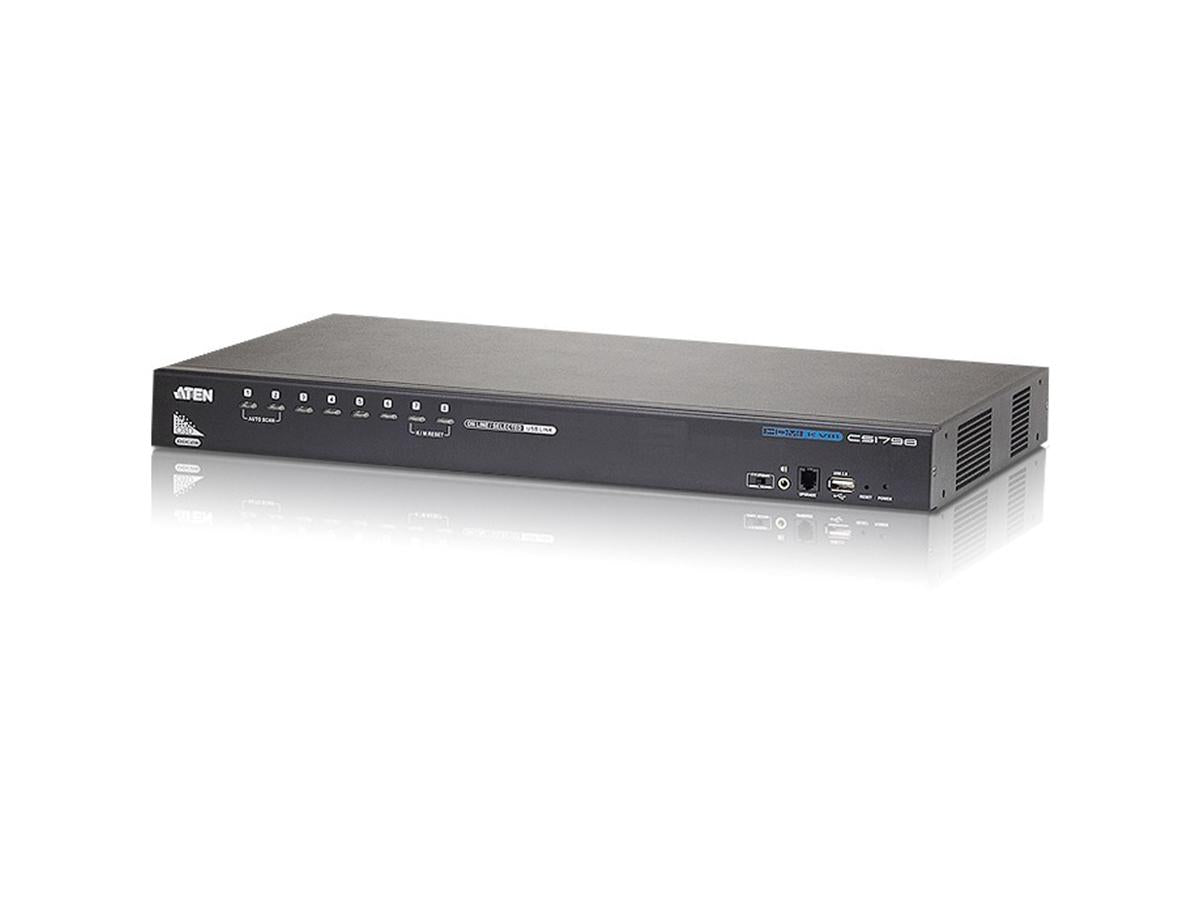 The CS1798 8-port USB HDMI KVM Switch is a multi-purpose appliance that consolidates access and control of up to 8 HDMI computers from a single USB keyboard, USB mouse, and monitor console.