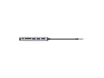 Features | Compact and slim design with aluminum casing ideal for home, office, and travel; Connects a laptop to a HDMI port, SD and microSD slots, 1x USB-C PD 3.0 port and 2x USB-A ports through a single USB-C port |