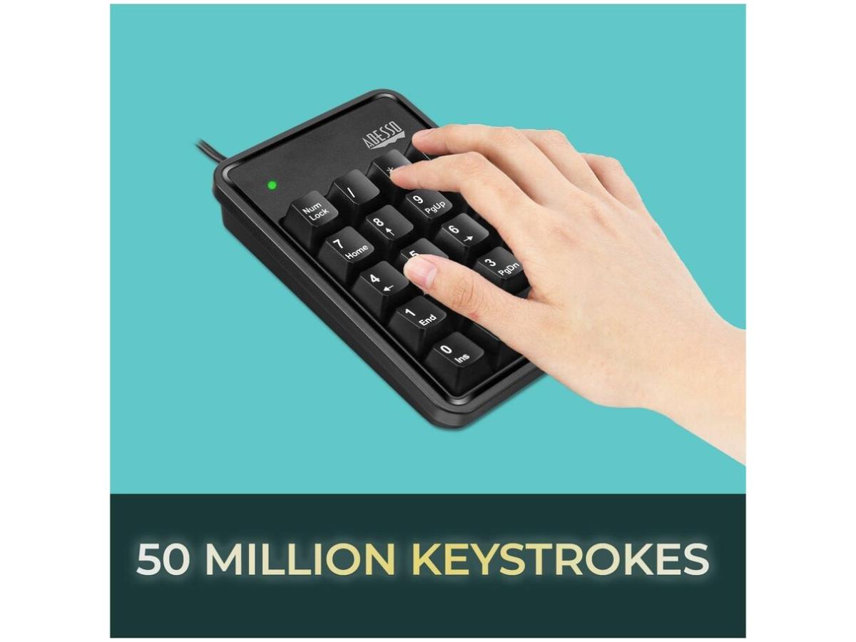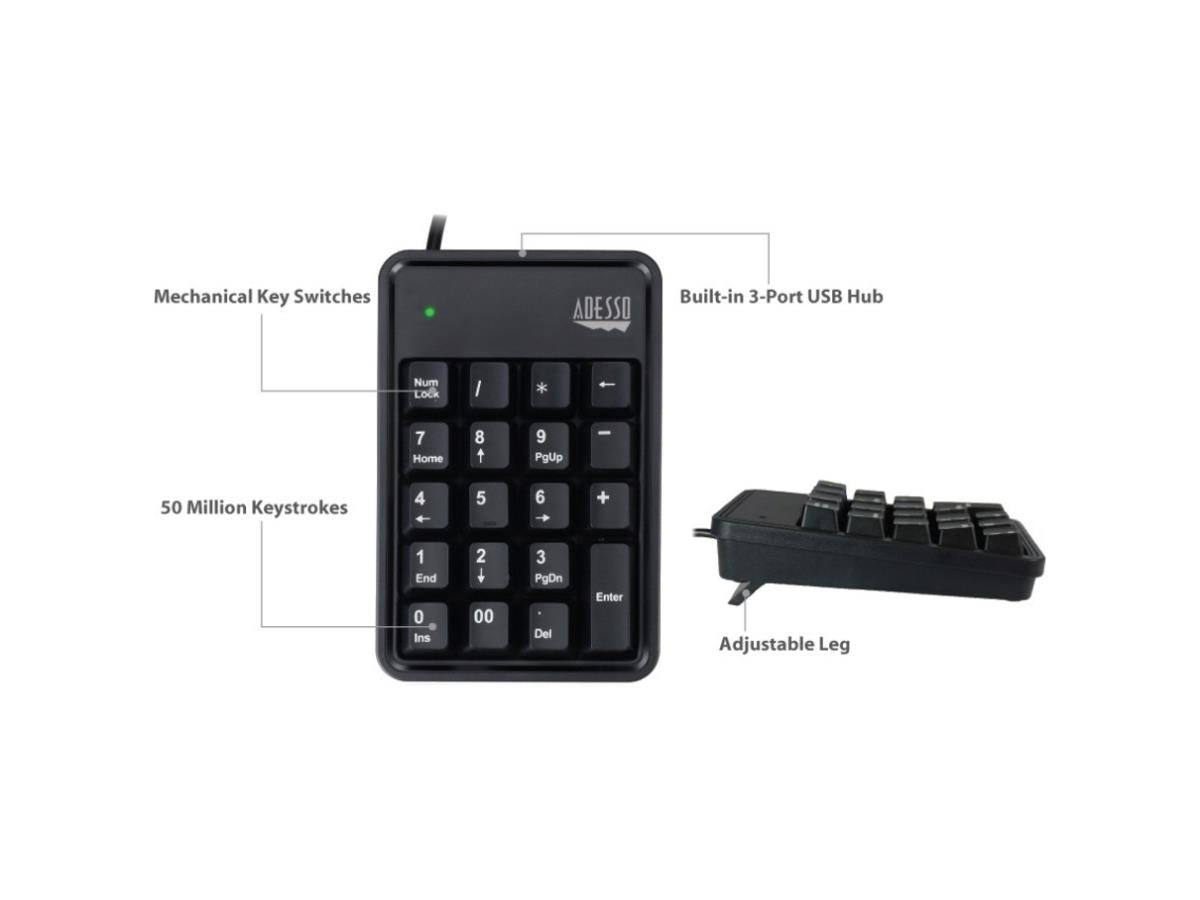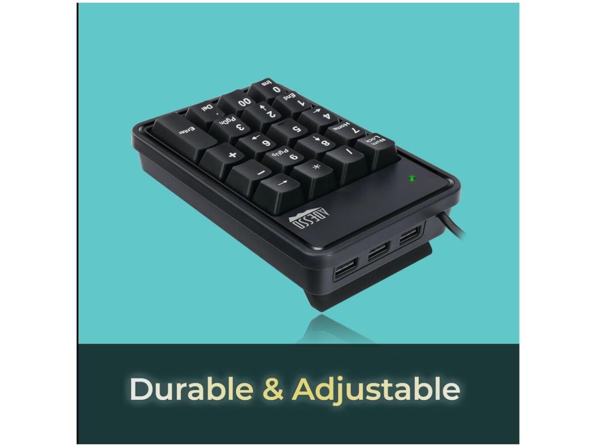 USB 19-Key Mechanical Keypad with Mechanical Key Switches, 3-Port USB Hub, 50 Million Keystrokes, Durable & Adjustable