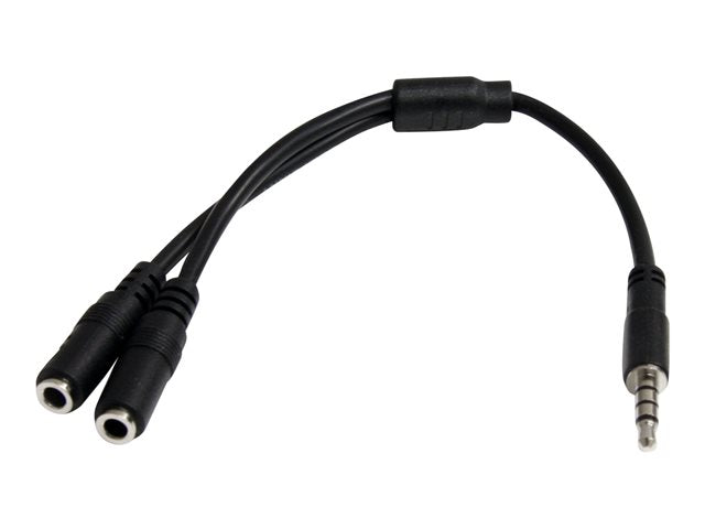 StarTech.com 3.5mm 4 Pin to 2x 3 Pin 3.5mm Headset Splitter Adapter - Headset splitter - stereo mini jack female to 4-pole mini jack male - 7.9 in - black