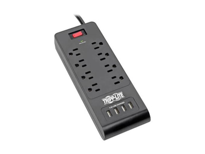 Eaton Tripp Lite Series Surge Protector Power Strip 8-Outlets 4 USB Ports 6ft Cord Black - Surge protector - 15 A - AC 120 V - 1875 Watt - output connectors: 8 - 6 ft cord - black