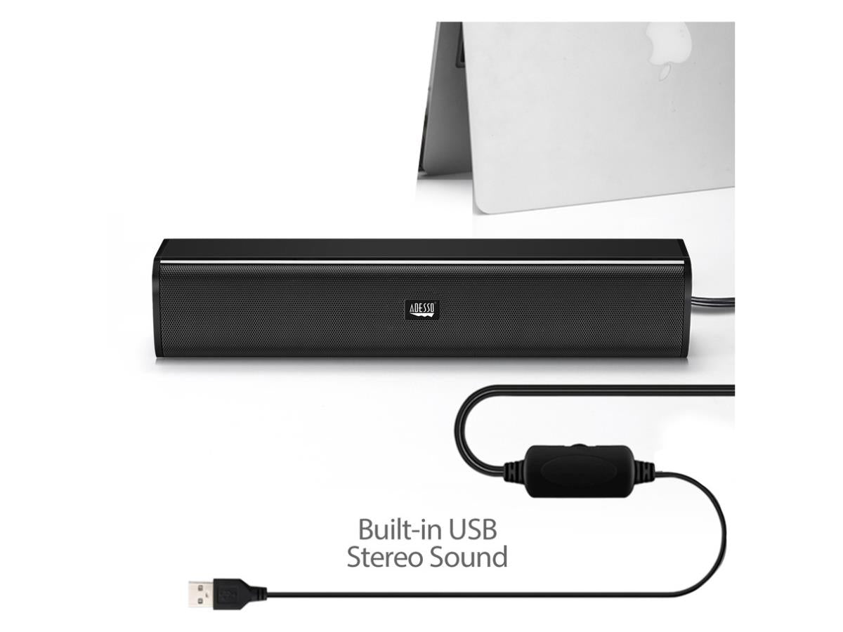 The Adesso Xtream S5 is a high power 5W x 2 desktop USB speaker sound bar. Just plug the USB cable into your computer and immerse yourself in the rich sound of music movies and games as this speaker system is integrated with dual speaker units that deliver mind blowing stereo sound.