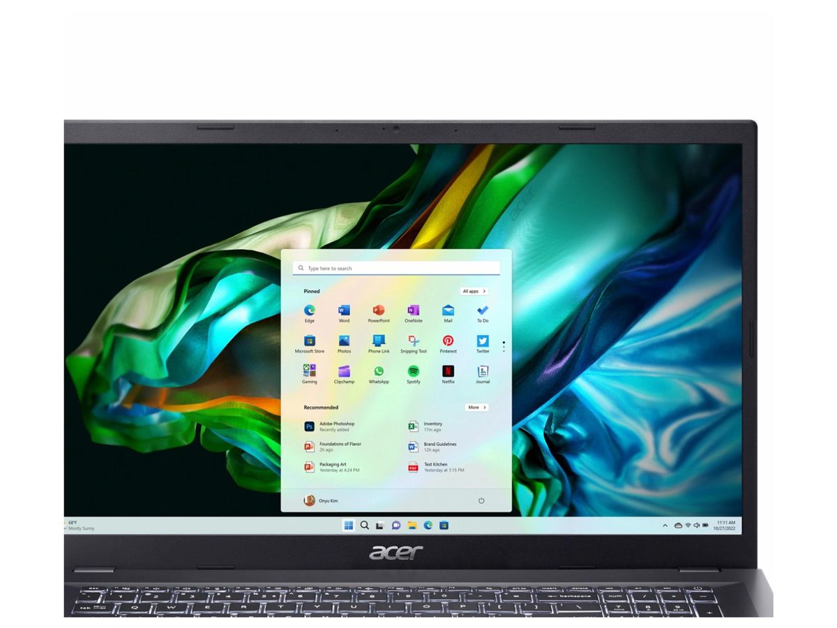 Aspire 5; A517-58M-52A1-CA; Windows 11 Home; 17.3IN Full HD IPS (1920x1080); Intel Core i5-1335U; 12 MB Smart Cache, 1.3 GHz with Intel Turbo Boost Technology 2.0 up to 4.6 GHz; 16GB LPDDR5; 512GB PCIe SSD; Intel Iris X(e) Graphics; Wi-Fi 6E Wireless LAN, 802.11 ab/g/n/ac/ax, Band: 2.4GHz, 5GHz, and 6GHz, 2x2 MU-MIMO, Bluetooth 5.1; 3 Cell Li-ion Battery; Headphone/speaker Jack, 1x USB Type-C Port, 2 x USB Standard-A ports, HDMI; Kensington Lock Slot; 1 Year Limited Warranty; Steel Gray