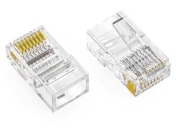 AXIOM RJ45 CAT5E UTP PLUG, SOLID/STRANDED WIRE, 50 MICRON, 100-PACK