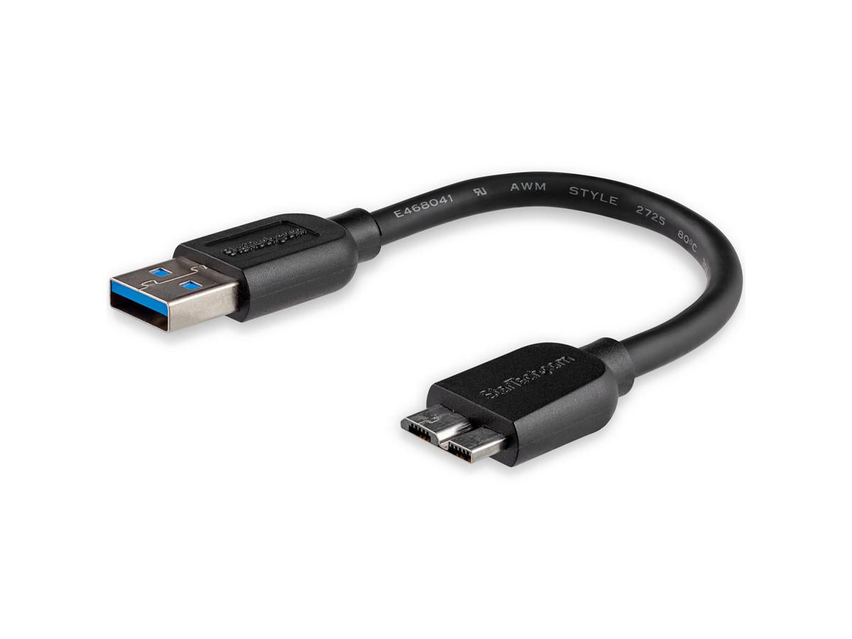 StarTech.com 15cm 6in Short Slim USB 3.0 A to Micro B Cable M/M - Mobile Charge Sync USB 3.0 Micro B Cable for Smartphones and Tablets (USB3AUB15CMS) - USB cable - Micro-USB Type B (M) to USB Type A (M) - USB 3.0 - 5.9 in - molded - black - for P/N: HB30A4AIB, HB30C4AIB, HB31C4AB, S251BMU313, S251BMU3FP, S251BPU313, SMS1BMU313