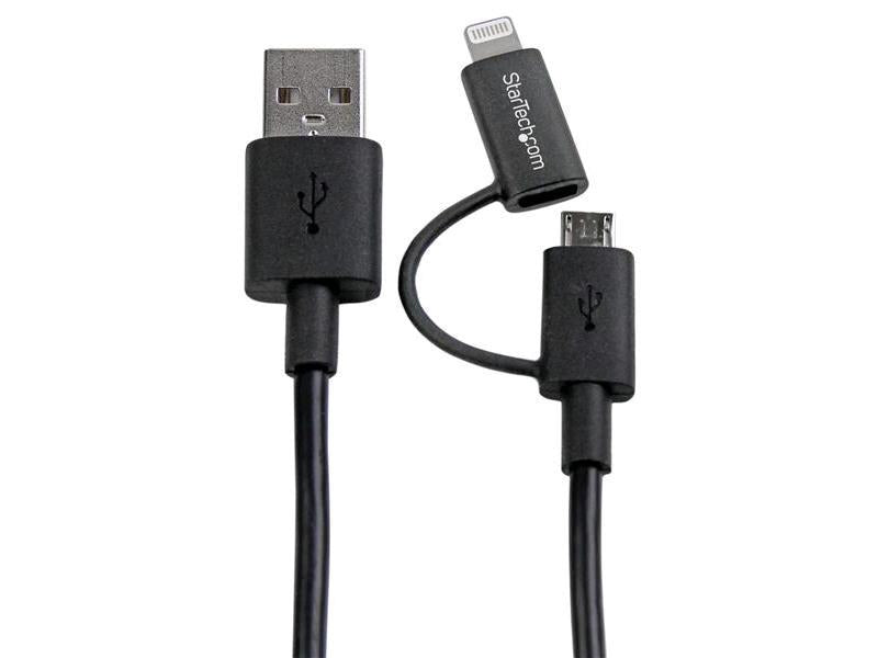 Product Description | StarTech.com 1m (3 ft) Black Apple 8-pin Lightning Connector or Micro USB to USB Combo Cable for iPhone iPod iPad - Charge and Sync Cable (LTUB1MBK) - charging / data cable - Lightning / USB - 3.3 ft |