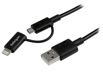 StarTech.com 1m (3 ft) Black Apple 8-pin Lightning Connector or Micro USB to USB Combo Cable for iPhone iPod iPad - Charge and Sync Cable (LTUB1MBK) - Charging / data cable - USB male to Micro-USB Type B, Lightning male - 3.3 ft - shielded - black - for P/N: ARMTBLTDT, ARMTBLTIW, SECTBLTDT, SECTBLTPOS, STNDTBLT1A5T, STNDTBLT1FS, STNDTBLTMOB
