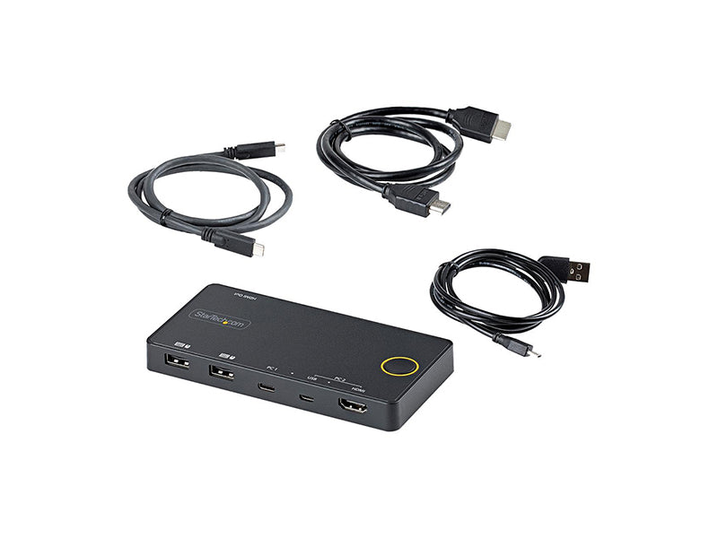 StarTech.com 2 Port Hybrid USB-A + HDMI & USB-C KVM Switch, Single 4K 60Hz HDMI 2.0 Monitor, Compact Desktop and/or Laptop HDMI KVM Switch, USB Bus Powered, Thunderbolt 3 Compatible - 2 Port HDMI KVM Switch (SV221HUC4K) - KVM / audio switch - 2 x KVM / audio - desktop
