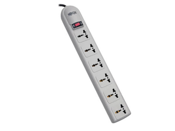 SUPER6OMNI B - Surge Protector - 230V AC - Circuit Breaker - (6) Universal outlets - Light Gray - Lifetime limited warranty - 6 universal outlets. 1.8 m power cord with British plug. 750 joule rating