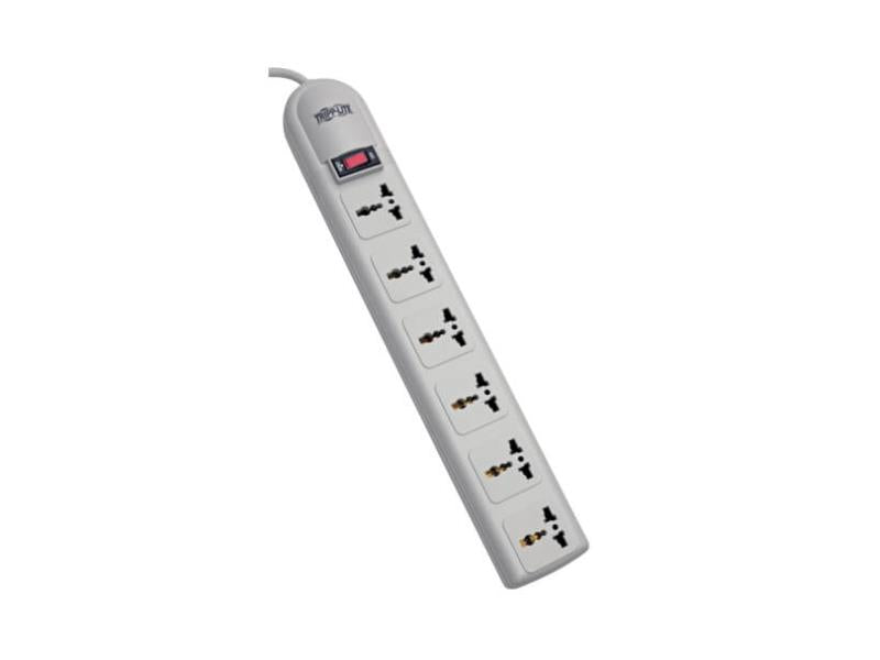 SUPER6OMNID - Surge Protector - 230V AC - Circuit Breaker - (6) Universal outlets - Light Gray - Lifetime limited warranty - 6 universal outlets. 1.8 m power cord with German/French plug. 750 joule rating