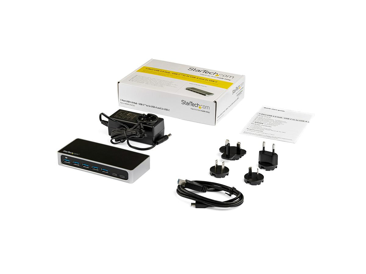 Product Description StarTech.com 7 Port USB C Hub with Fast Charge Port, USB-C to 5x USB-A 2x USB-C USB 3.0 (USB 3.1/3.2 Gen 1 SuperSpeed 5Gbps), Self Powered Type-C Hub w/ Power Adapter, Desktop/Laptop Hub - Windows/macOS/Linux (HB30C5A2CSC) - hub - 7 ports