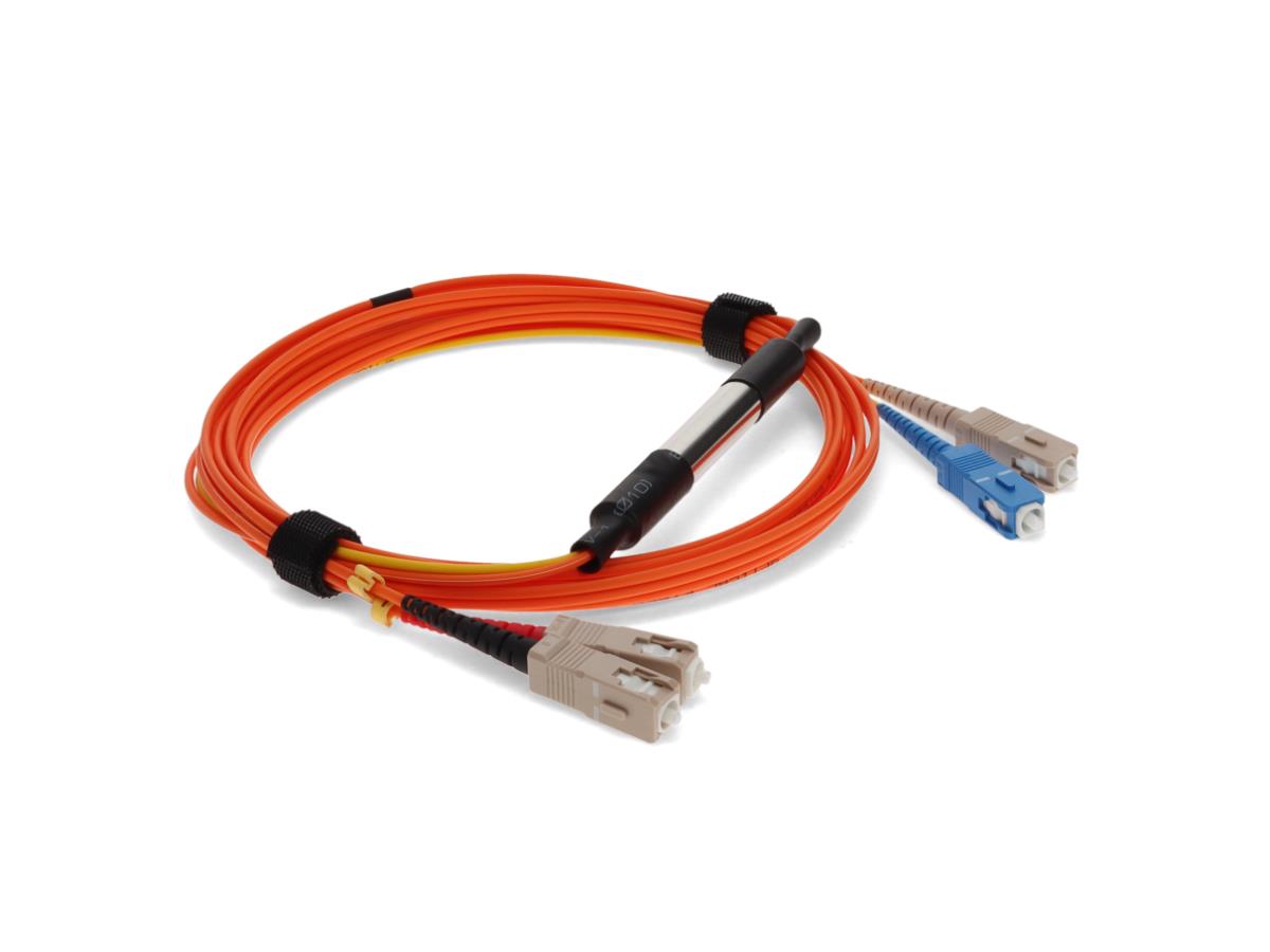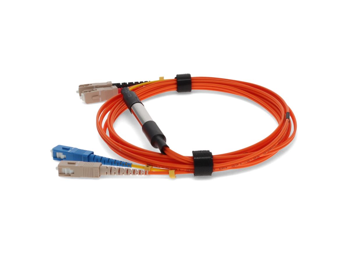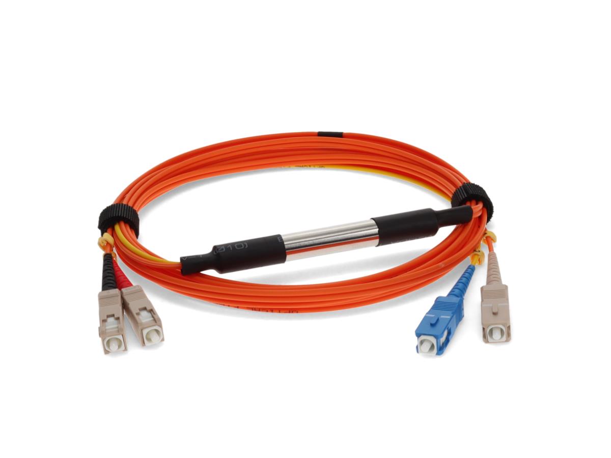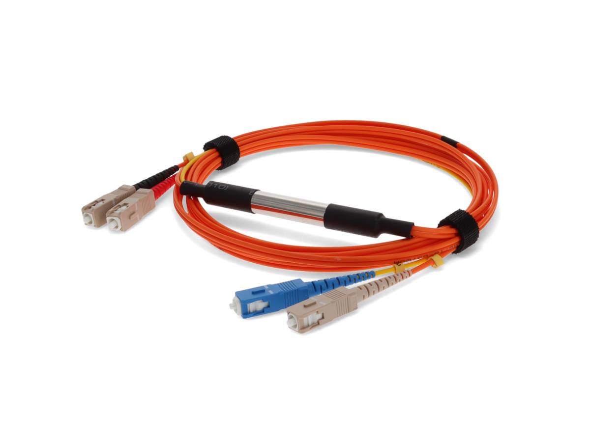 This is a 3m SC (male) to SC (male) orange duplex riser-rated fiber mode conditioning cable. OM1 & OS1 eliminates differential mode delay signals by aligning the single-mode launch away from the center of a multimode fiber core. This creates a transmitted