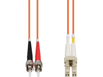 This is a 1m LC (male) to ST (male) orange duplex riser-rated fiber patch cable. OM2 cables have a standard jacket color of orange and a core size of 50 m. They support 10 Gigabit Ethernet for lengths measuring up to 82 meters, but are more commonly used