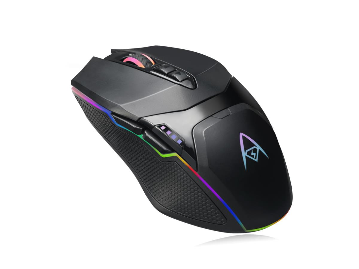 ADESSO WIRELESS MULTI-COLOR PROGRAMMABLE 7-BUTTON 16000 DPI GAMING MOUSE WITH CHARGING CRADLE