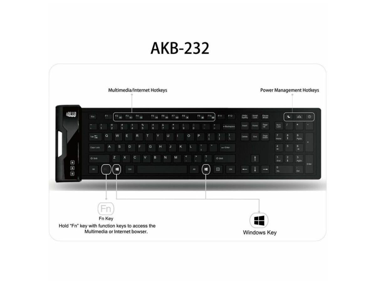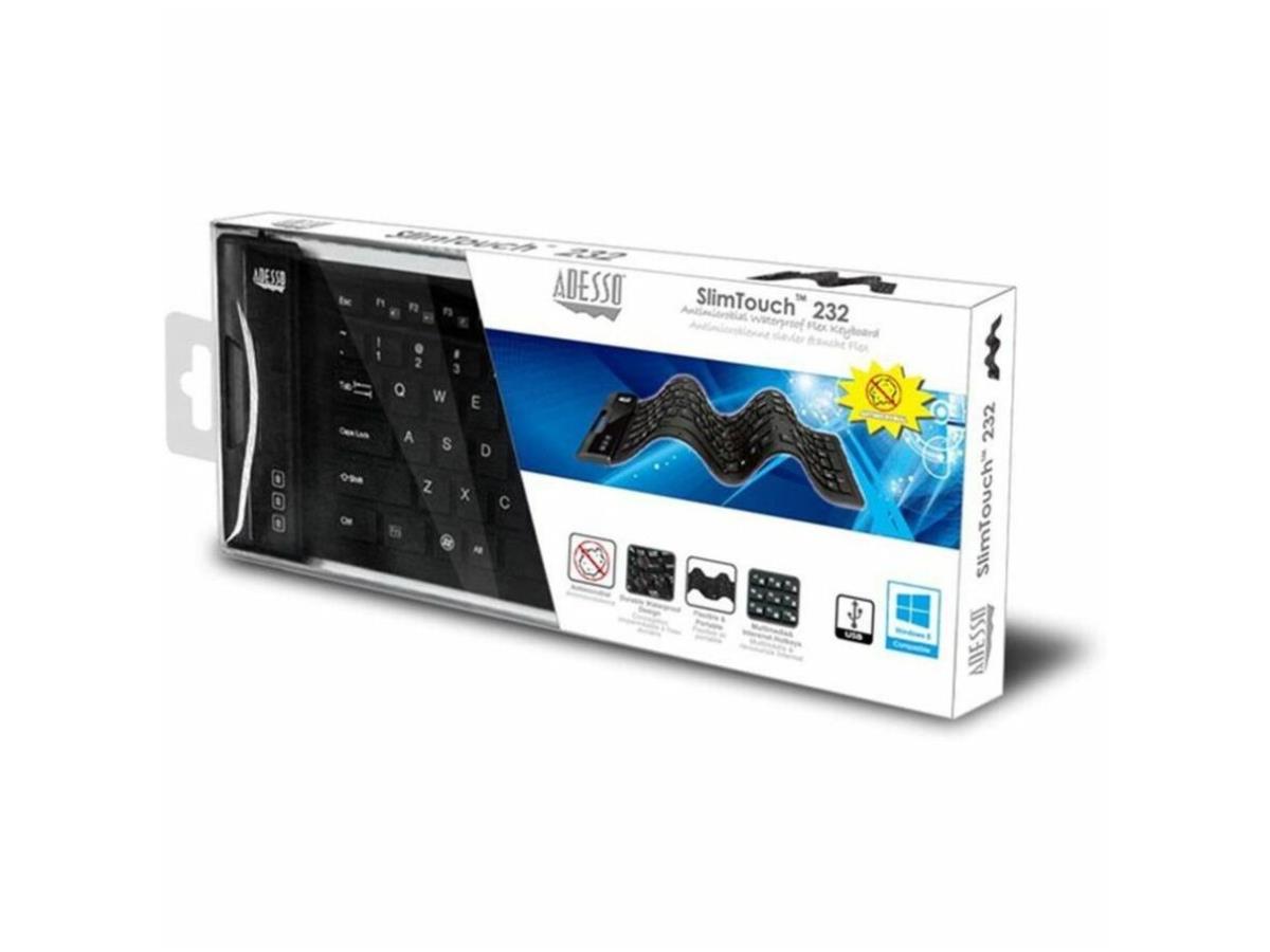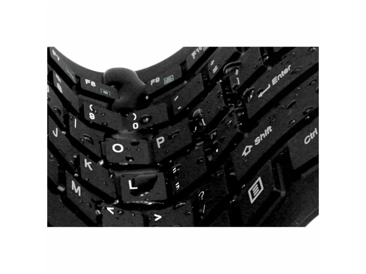 ANTIMICROBIAL WATERPROOF FLEX KEYBOARD WITH MULTIMEDIA/HOT KEYS, BLACK USB, FULL SIZED