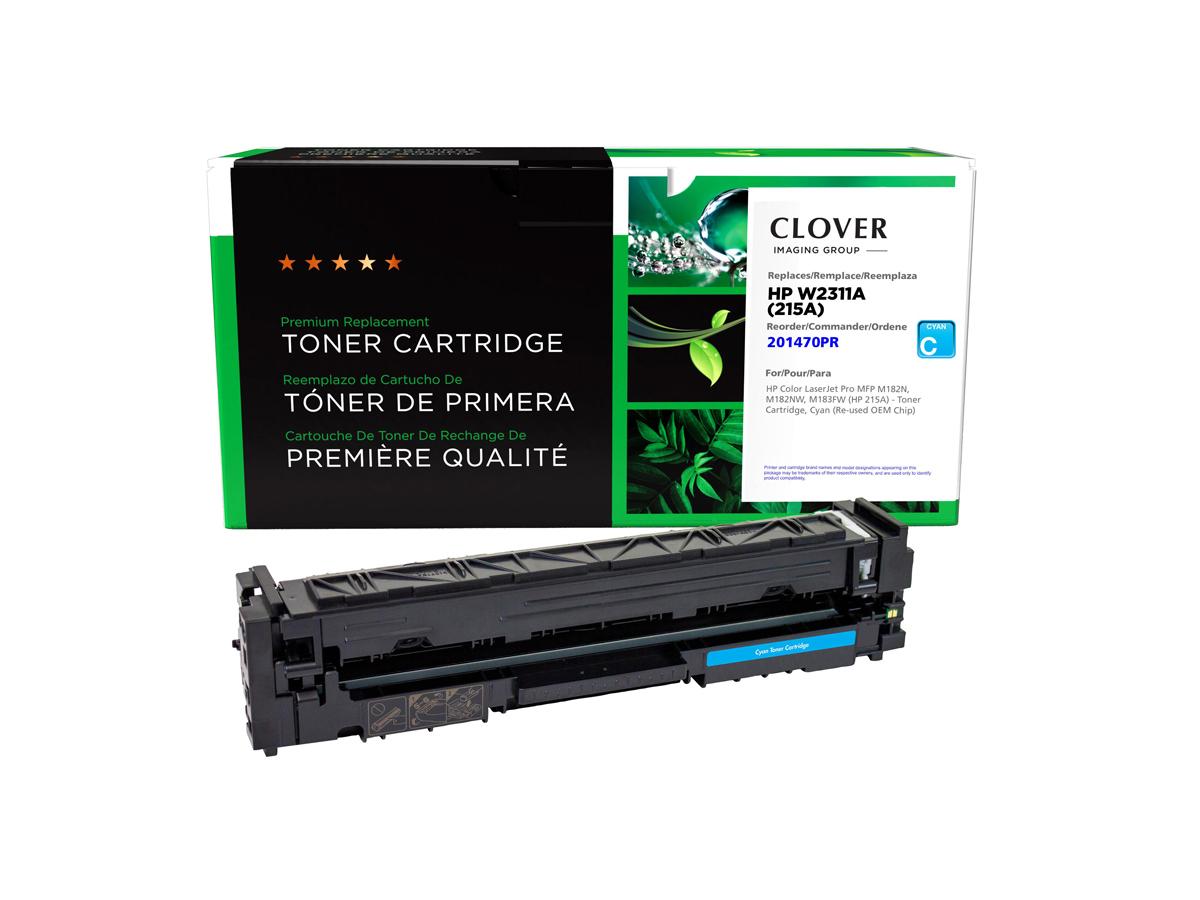 CLOVER IMAGING REMANUFACTURED CYAN TONER CARTRIDGE FOR HP W2311A (HP 215A) RE USE CHIP DOES NOT INCLUDE TONER LOW MESSAGING