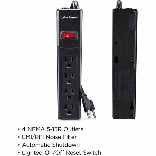 Cyber Power CSB404 4OUT UL1449 15K 4FT CORD EMI/RFI 450J SURGE PROTECTOR