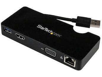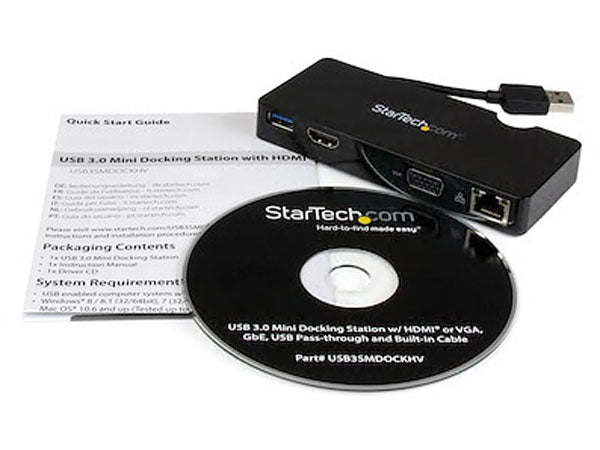 Product Description | StarTech.com USB 3.0 to HDMI or VGA Adapter Dock - USB 3.0 Mini Docking Station w/ USB, GbE Ports - Portable Universal Laptop Travel Hub (USB3SMDOCKHV) - docking station - USB - HDMI - 1GbE |