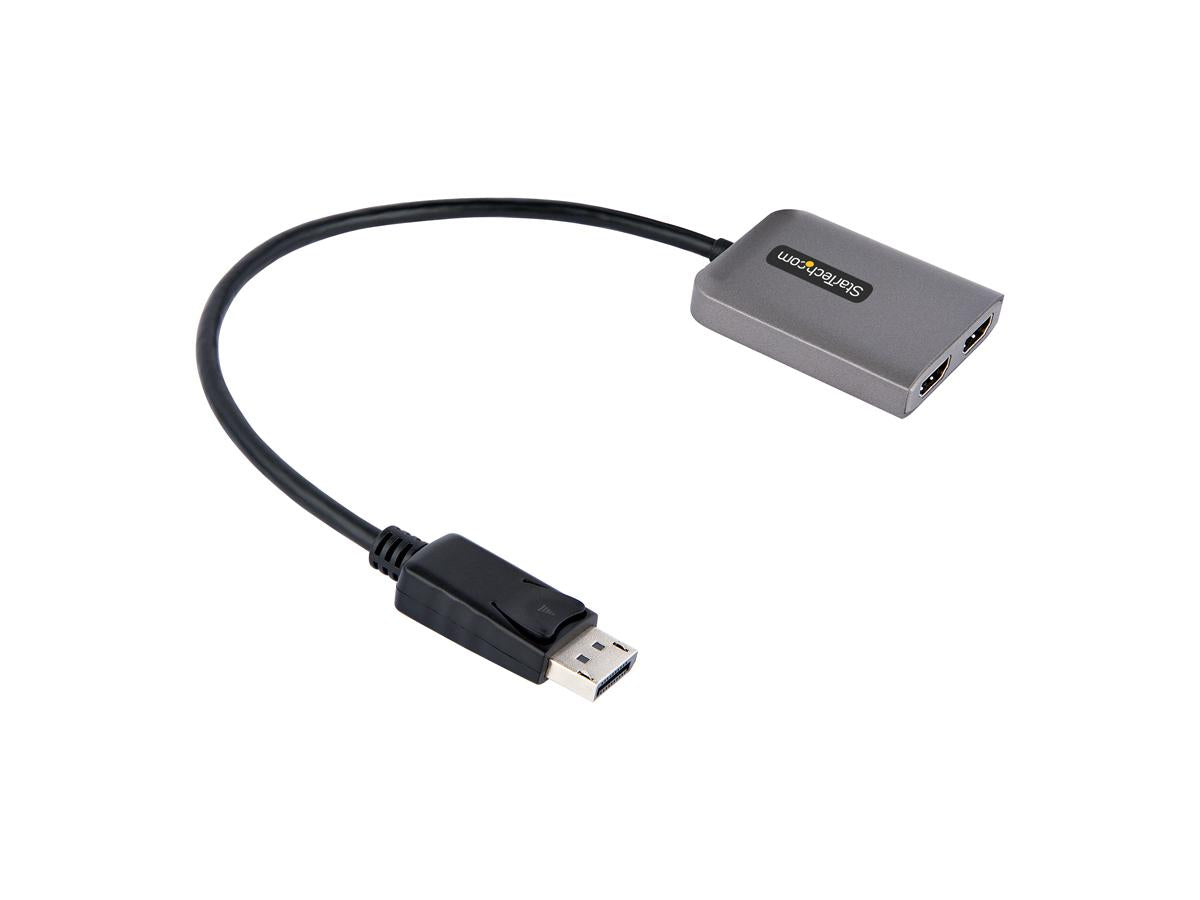 StarTech.com DP to Dual HDMI MST HUB, Dual HDMI 4K 60Hz, DisplayPort Multi Monitor Adapter with 1ft (30cm) Cable, DP 1.4 Multi Stream Transport Hub, DSC | HBR3, DP to 2x HDMI Ports - DP to HDMI Splitter (MST14DP122HD) - Adapter - DisplayPort male to HDMI female - gray