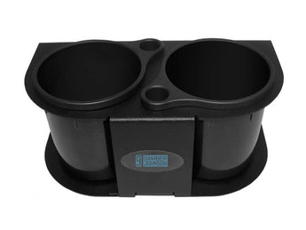 Features | Black powdercoat finish on metal bracket with opening for two individual cup inserts, Heavy gauge steel construction for long - term durability, Bracket mounts to console boxes or to top plate, Two black cup inserts with convenient pen holder, Inserts removable for cleaning, Cup depth is over 3.5" (8.89 cm), Cup opening diameter is 3.4" (8.64 cm) |