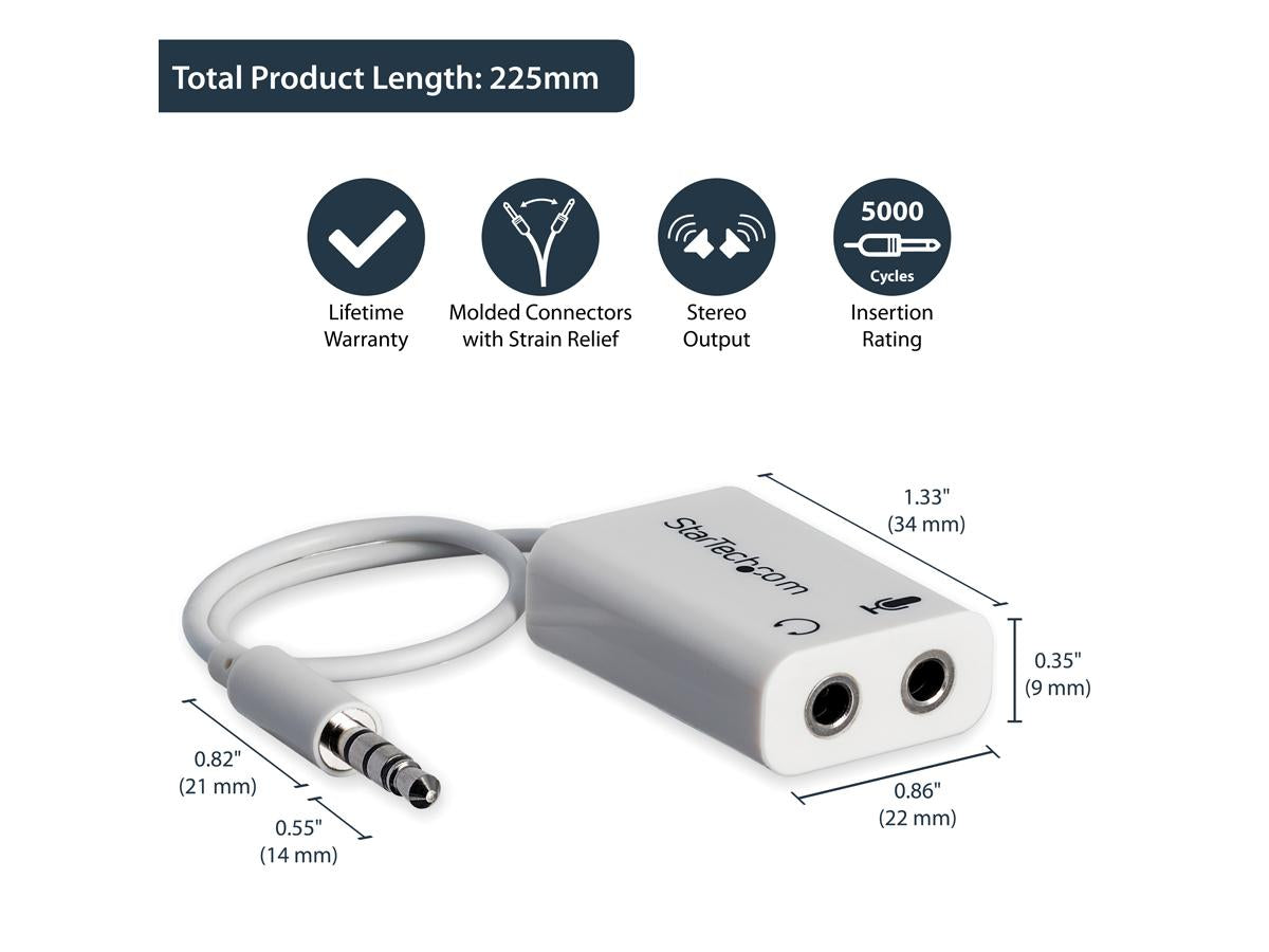 StarTech.com 4 Position Microphone and Headphone Splitter 3.5 mm 4 Pin / 4 Pole Mic and Audio Combo Splitter Cable (MUYHSMFFADW) - Headset splitter - mini-phone stereo 3.5 mm female to 4-pole mini jack male - 6 in - white - for P/N: MUHSMF2M