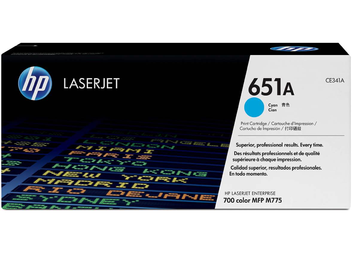 HP 651A (CE341A) Cyan Original LaserJet Toner Cartridge; Avg Page Yield 16000