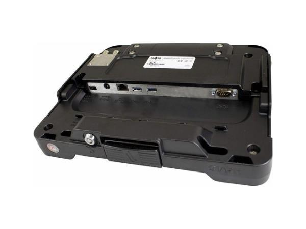 Features Powered USB-A (2), Serial, Ethernet, Dual RF, Antenna Switch. Can be mounted in laptop or convertible mode, requires keyboard. Includes 120W LIND power supply (bare wire). VESA 75 mounting pattern; Keyed alike; Floating dock connector for reliable connectivity in any environment. Also available: no pass through, as well as versions without LIND power supply.