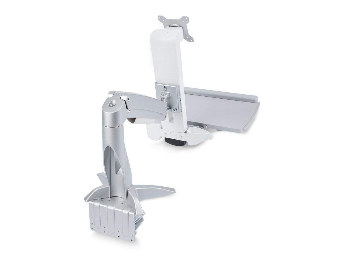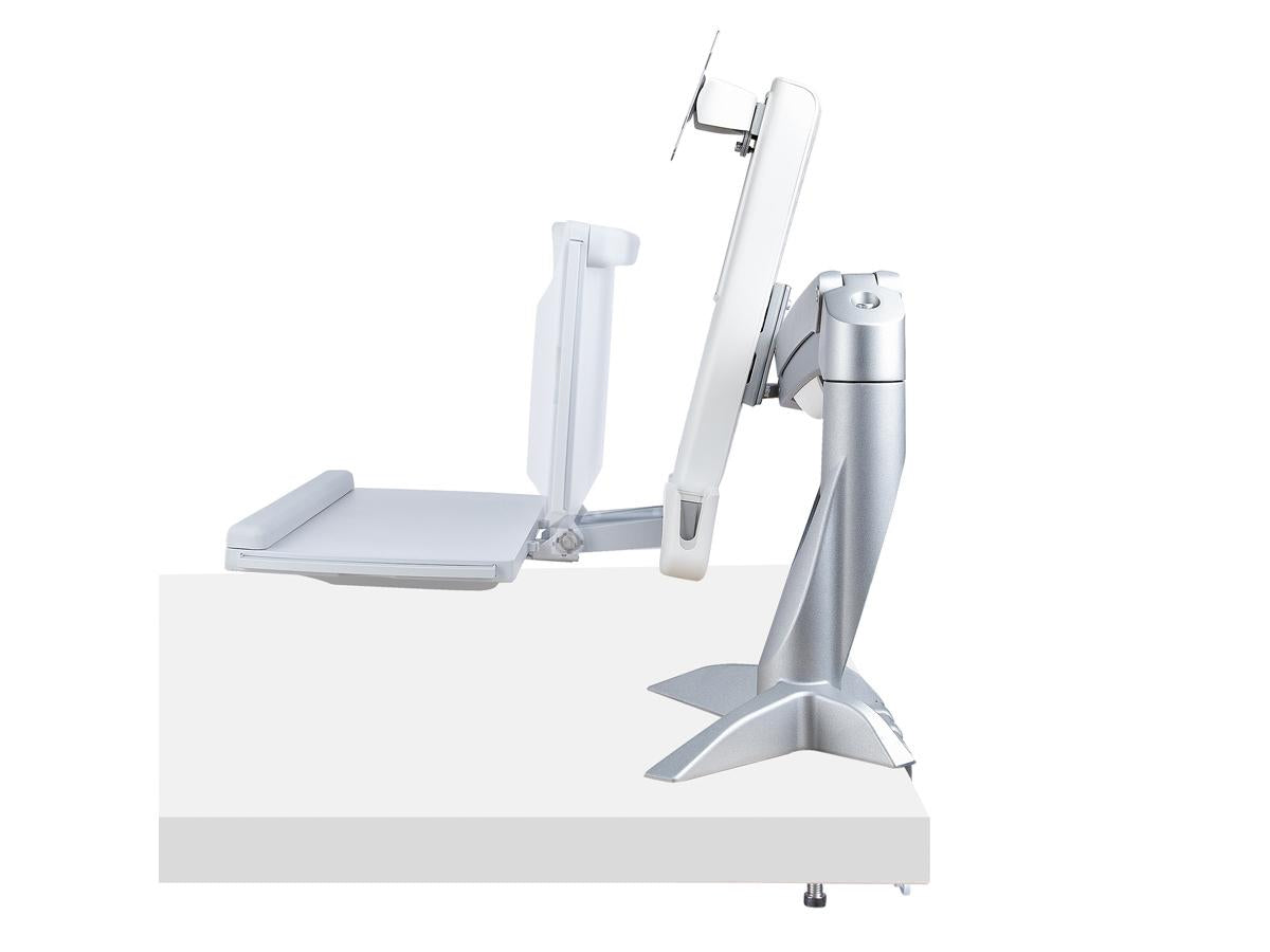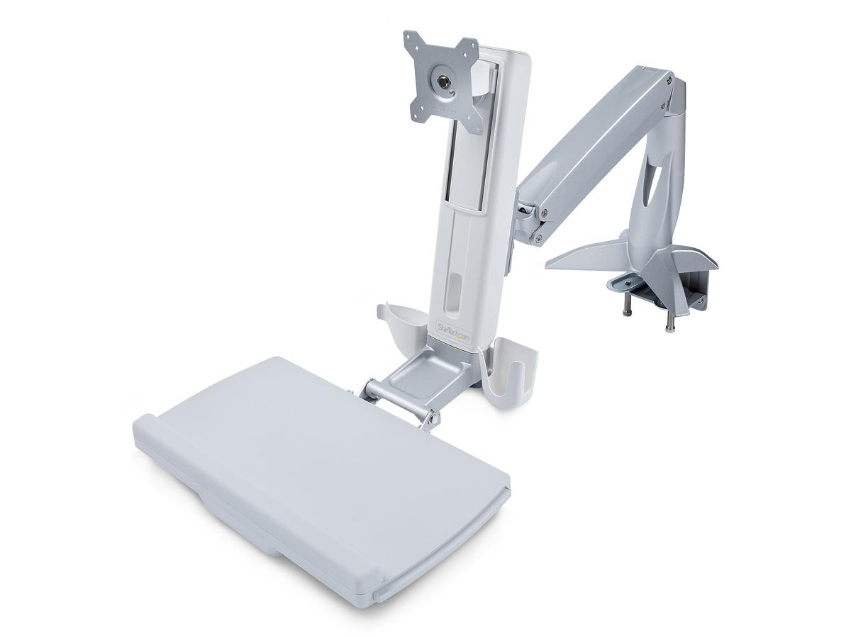 Product Description | StarTech.com Sit-Stand Monitor Arm with Keyboard Tray, Desk Mount Adjustable Sit-Stand Workstation Arm for Single 27" VESA Mount Display, Ergonomic Articulating Standing Desk Converter - White Sit to Stand Desk (SIT-STAND-ARM-1MS) mounting kit - height adjustable - for monitor / keyboard - white, silver |