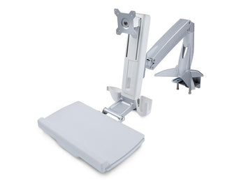 StarTech.com Sit-Stand Monitor Arm with Keyboard Tray, Desk Mount Adjustable Sit-Stand Workstation Arm for Single 27" VESA Mount Display, Ergonomic Articulating Standing Desk Converter - White Sit to Stand Desk (SIT-STAND-ARM-1MS) - Mounting kit (base plate, column, grommet plate, keyboard tray, monitor arm, base, base pad, keyboard tray cap) - height adjustable - for monitor / keyboard - plastic, aluminum, steel - white, silver - screen size: up to 27" - desktop