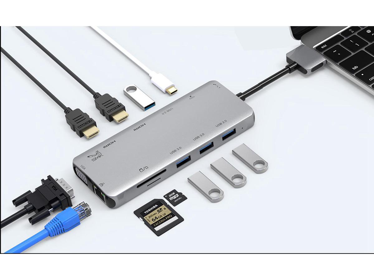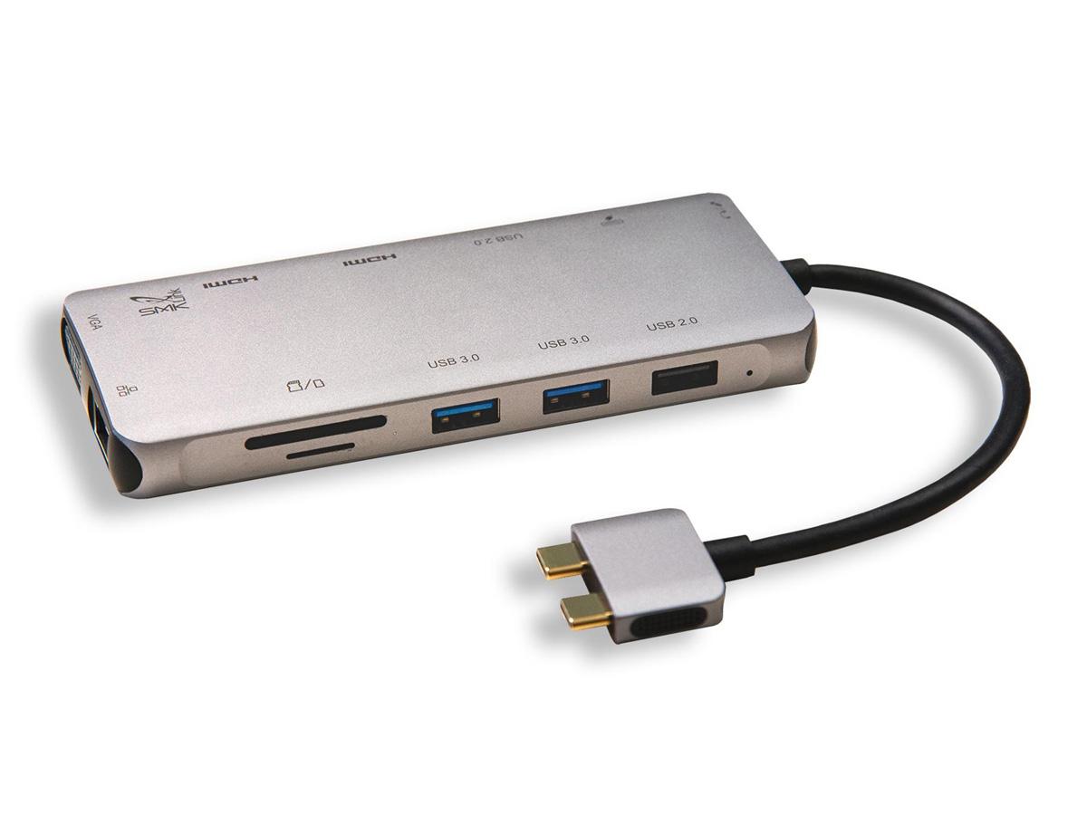 SMK ELECTRONICS USB-C MINI DOCK DUAL 4K HDMI, VGA 100W PD