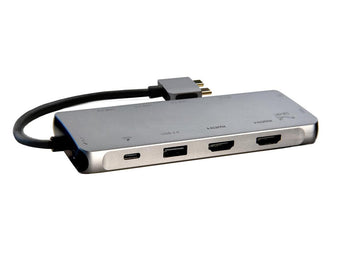 Features | Extend Mode for macOS Powered by a dual-prong USB-C upstream cable, the VP6960 Mini Docking Station enables viewing multiple screen images or video feeds simultaneously on up to 2 external 4K/UHD displays. The VP6960 supports MacBook Pro, MacBook Air, Mac Mini, and the new Apple M1 systems (M1 computers support one external monitor). Dual 4K Multi-Stream Triple Video Combining dual 4K HDMI and a single VGA port, view independent screen images simultaneously up to 4K resolution in Extend Mode. Support up to 3 external output devices with HDMI and VGA connectivity. 100W USB-C Power Delivery - An integrated USB-C Power Delivery Port delivers up to 100W power to charge notebook computers, mobile devices and the stations other supported USB peripherals. Ultra-Connectivity - The VP6960 provides fully-loaded notebook connectivity with 12 ports, including dual 4K HDMI ports, a VGA port for legacy displays, four USB ports, SD and SD/Micro Card Readers, a 1-Gigabit Ethernet port, a 3.5mm audio port, and a 100W USB-C Power Delivery port. Home Office Connectivity The USB-C Mini Docking Station is your home office connectivity solution, enabling viewing on multiple monitors, connecting to external drives and printers, joining local area networks, charging mobile devices and more. Road-Ready - Slipping easily into your travel bag, the compact VP6960 keeps you connected, everywhere you go. |