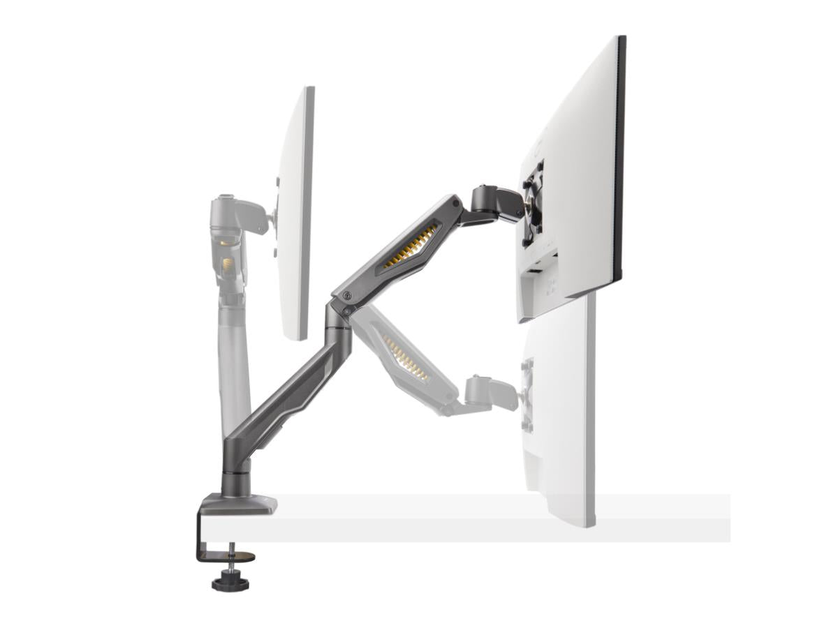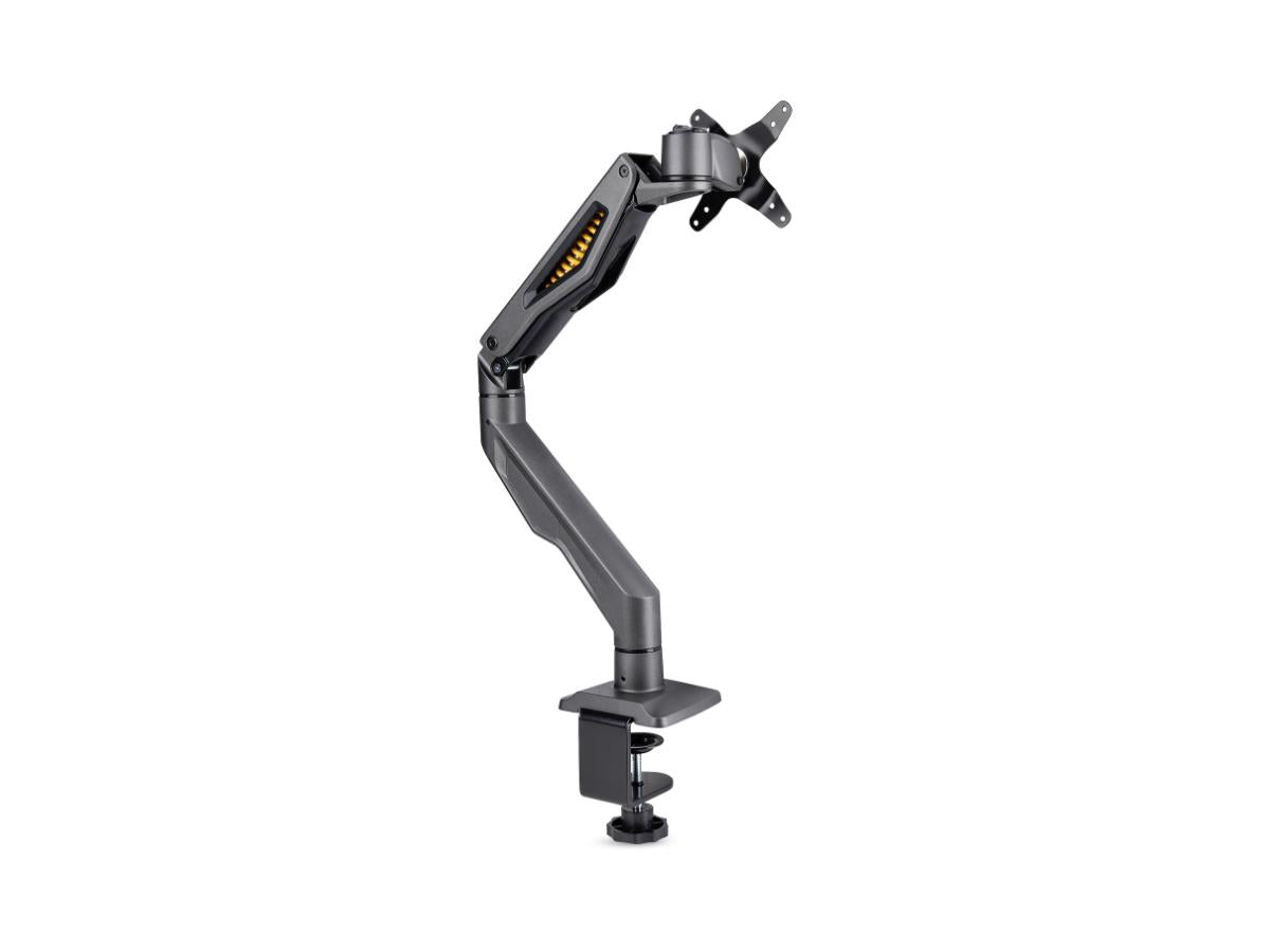 Monitor desk mount for up to 32-inch/22lb display - Mechanical spring articulating arm; Ships pre-assembled - C-clamp; Max desk thick 2.3in - Toolless ergonomic VESA mount w/ +/-15 swivel, +65/-15 tilt, 360 screen rotation for portrait/landscape