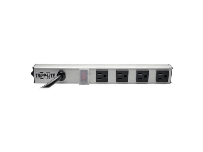 Tripp Lite Power Strip 120V 5-15R 4 Outlet 6' Cord 12 Inch Length Metal - Power strip - AC 120 V - 1800 Watt - input: NEMA 5-15 - output connectors: 4 - 6 ft cord - gray, black