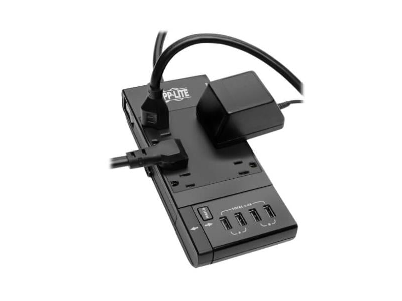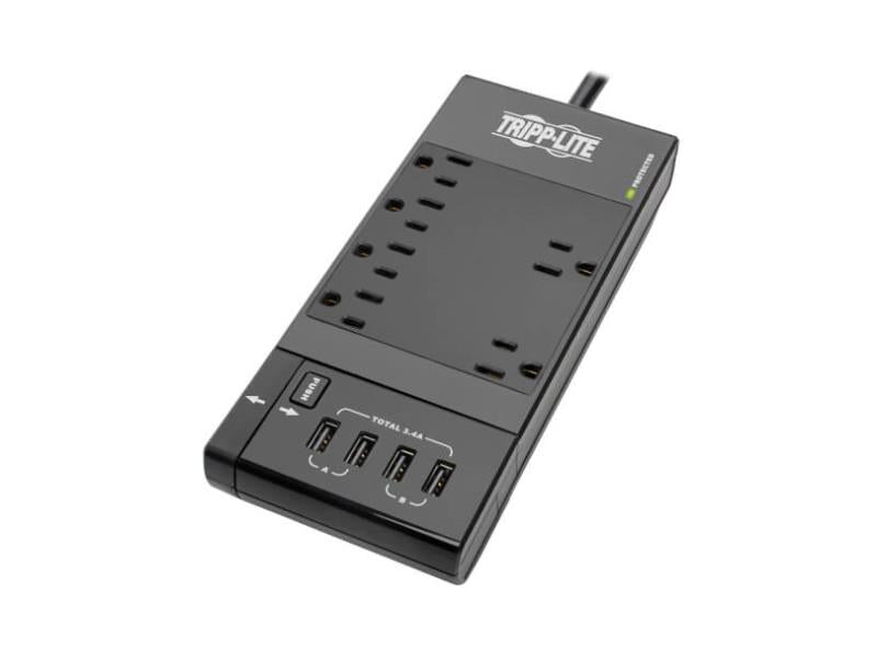 Product Description | Eaton Tripp Lite Series Safe-IT 6-Outlet Surge Protector with Retractable USB Charger - 5-15R Outlets, 4 USB Ports, 8 ft. (2.4 m) Cord, Antimicrobial Protection - surge protector - 1800 Watt |