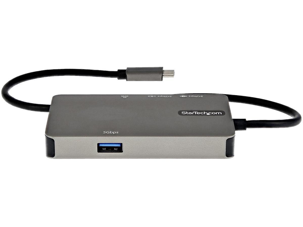 Product Description StarTech.com USB-C Multiport Adapter, USB-C to 4K 30Hz HDMI or 1080p VGA, USB Type-C Mini Dock with 100W Power Delivery Passthrough, 3-Port USB 3.0 Hub 5Gbps, GbE, 12" Long Attached Cable - Works w/ Thunderbolt 3 (DKT30CHVPD2) - docking station - USB-C - HDMI, VGA - 1GbE