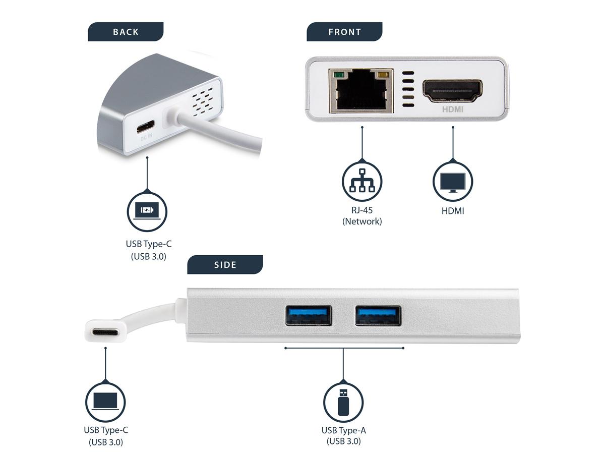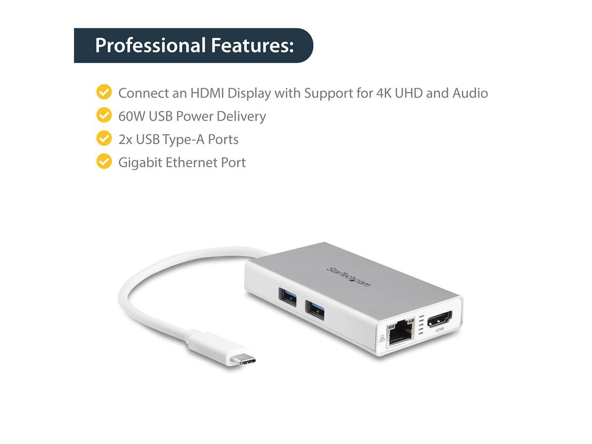 Product Description StarTech.com USB-C Multiport Adapter, USB-C Travel Docking Station with 4K HDMI, 60W Power Delivery Pass-Through, GbE, 2pt USB-A 3.0 Hub, Portable Mini USB Type-C Dock for Laptop, White - Portable USB-C Dock (DKT30CHPDW) - docking station - USB-C / Thunderbolt 3 - HDMI - 1GbE - TAA Compliant