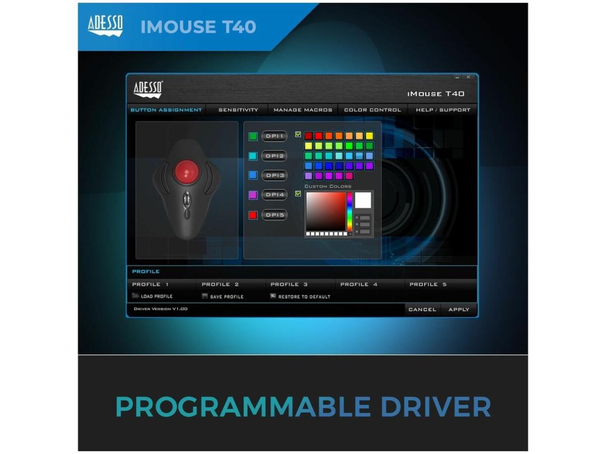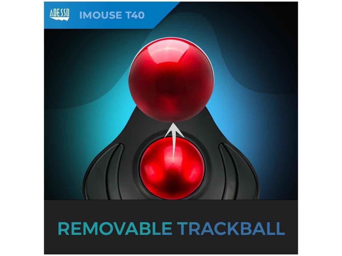 What's Included Adesso iMouse T40 Wireless Programmable Ergonomic Trackball Mouse; USB Wireless Receiver; 2 AAA Batteries; Quick Start Guide
